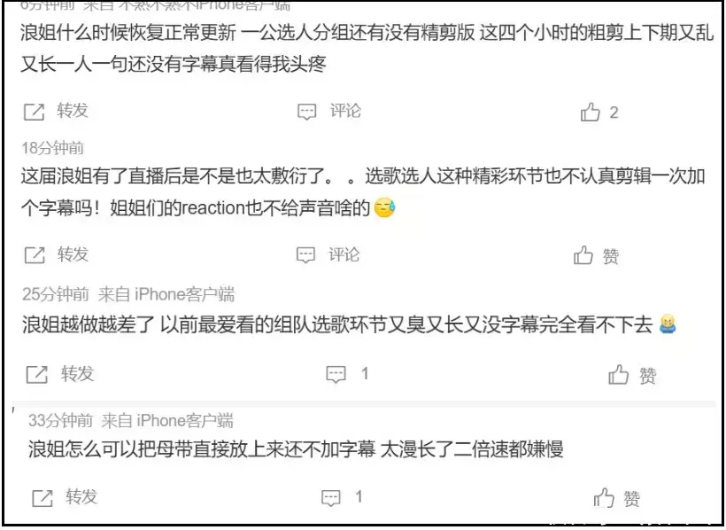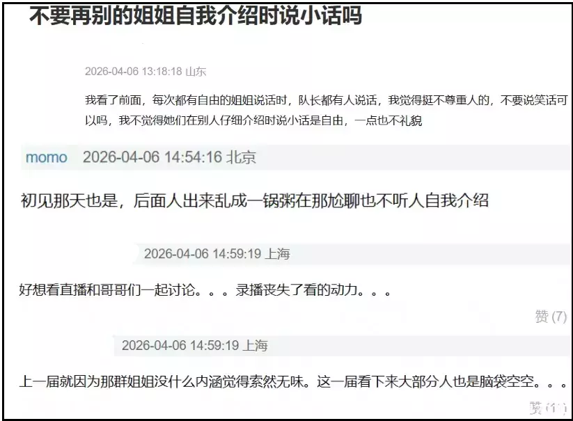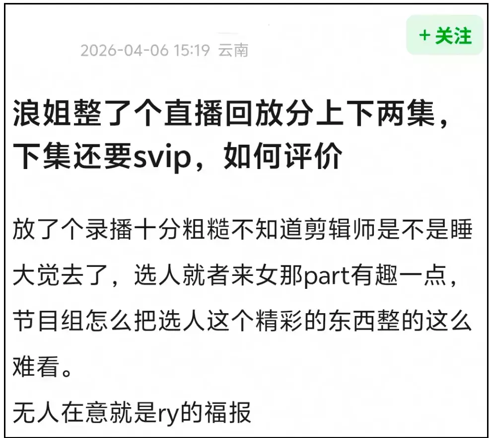 不止一位网友对《浪姐7》更改观看模式表达了不满,吐槽节目组吃相难看。